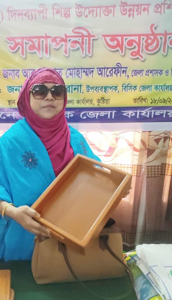 আমি ব্যবসাটি নিজ নিজে কারো সহযোগিতা ছাড়া শুরু করেছি ২০২১ সালে পরিবার আত্মীয় স্বজন কেউ সহযোগিতা করেনাই নিজের স্বর্ণের গহনা বিক্রি করে একটি মিস্তিরি দিয়ে শুরু করছি আলহামদুলিল্লাহ এখন ১৫+ নিয়ে কাজ করছি। অনেক কথা শুনেছি সবার মেয়ে হয়ে কাঠের ফানিচার নিয়ে কেন কাজ করি তার পরেও চেষ্টা করে যাচ্ছি কুষ্টিয়া জেলায় আমি প্রথম মেয়ে যে ফানিচার আইটেম নিয়ে কাজ করি। আমি অনলাইন পেজ ও গ্রুপ গুলো থেকে আলহামদুলিল্লাহ দেশের ও বিদেশের অনেক অর্ডার পায়।আমার নিজের একটা কারখানা আছে এখান থেকে সমস্ত ডেলিভারি দিয়ে থাকি কুষ্টিয়া সহ সারা বাংলাদেশে ডেলিভারি দেওয়া হয়